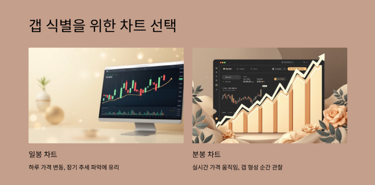 갭을 식별하는 데에는 일봉 차트와 분봉 차트가 효과적입니다. 일봉 차트는 하루의 가격 변동을 통해 갭의 발생 여부를 쉽게 확인할 수 있으며, 장기적인 추세를 파악하는 데 유리합니다. 반면, 분봉 차트는 짧은 시간 동안의 가격 움직임을 파악할 수 있어 갭이 형성되는 순간을 실시간으로 관찰하기에 좋습니다. 투자자들은 이 두 차트를 병행하여 갭 발생 시점을 정확히 파악하고 전략을 세울 수 있습니다.