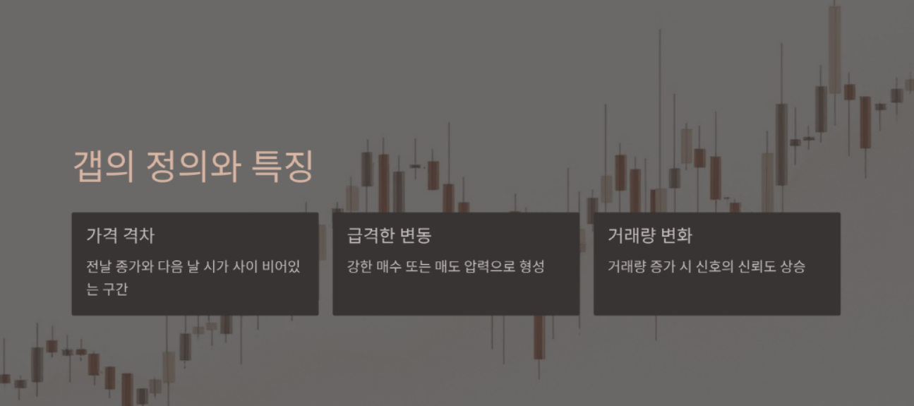 - 갑작스러운 가격 변동: 갭은 주가가 급격히 변동하는 시점에 발생하며, 강한 매수 또는 매도 압력으로 인해 형성됩니다.