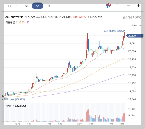 (ACE KRX 금현물, KODEX 골드선물(H), TIGER 골드선물(H))