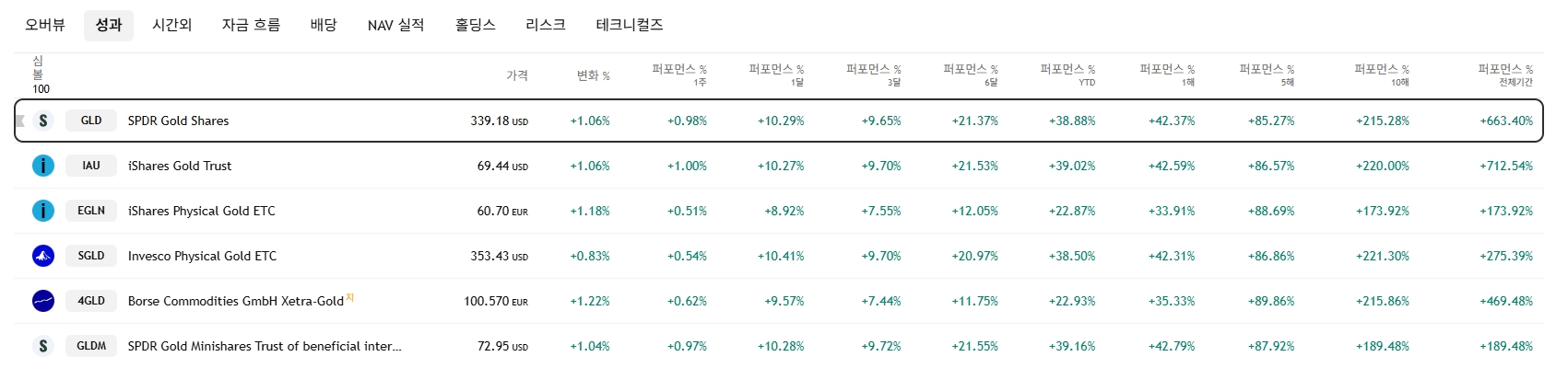 아래는 대표적인 해외 금 ETF입니다