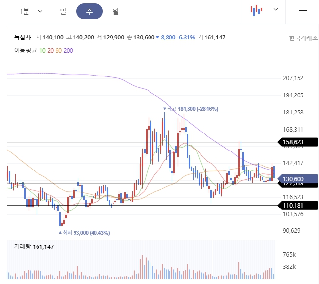 12만~13만 원 구간에서 1년 넘게 버티고 있다는 점입니다.