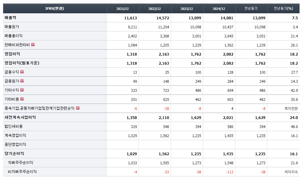 - ✅ 매출의 4.3% 규모(약 611억 원)를 연구개발(R&D)에 적극 투자