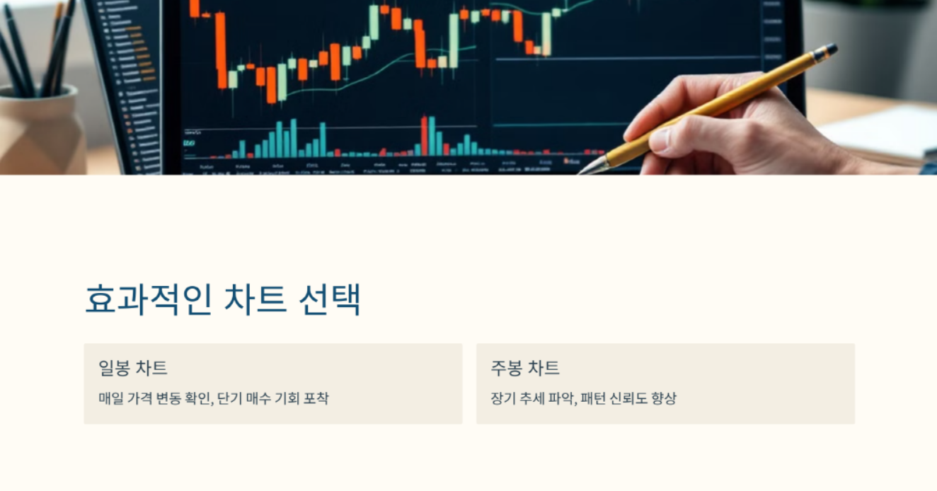 상승 삼각형 패턴을 식별하고 활용하는 데에는 일봉 차트와 주봉 차트가 효과적입니다. 일봉 차트는 매일의 가격 변동을 통해 패턴의 형성을 명확히 확인할 수 있으며, 단기적인 매수 기회를 포착하는 데 유리합니다. 반면, 주봉 차트는 장기적인 추세를 파악하는 데 도움을 주며, 패턴의 신뢰도를 높이는 데 유용합니다. 투자자들은 두 차트를 병행하여 분석함으로써 더 나은 매매 결정을 내릴 수 있습니다.