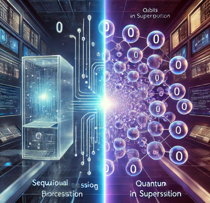 - 기존 컴퓨터는 문제를 해결할 때 한 가지 답을 하나씩 확인하며 진행해요.예를 들어, 비밀번호를 맞추려면 "0000", "0001", "0010"처럼 하나씩 시도해야 하죠.