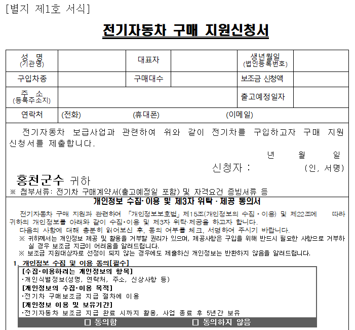 - 구매 계약서: 전기차 구매를 증명하는 계약서 사본