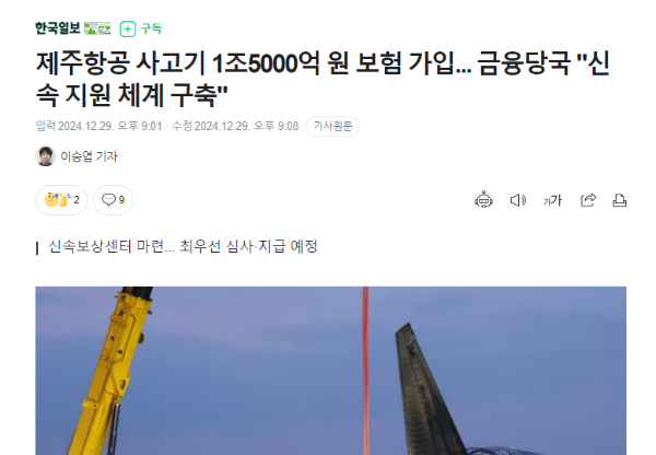 제주항공 사고기 1조5000억 원 보험 가입... 금융당국 "신속 지원 체계 구축"