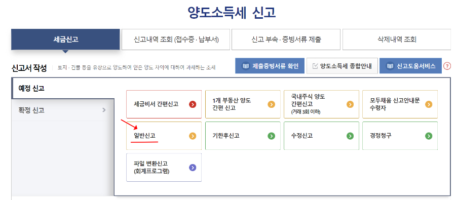 3. 예정신고 또는 일반 신고 클릭