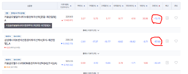 펀드매니저가 투자 결정을 내리고 운용하지만, 최종적인 수익과 리스크는 우리에게 돌아온다. 따라서 어떤 펀드를 선택할지 신중하게 판단해야 한다. 아래표를 확인해 보자. 수익률 차이가 보이는가? 단적인 예이지만 차이가 큰걸 확일할 수 있다.
