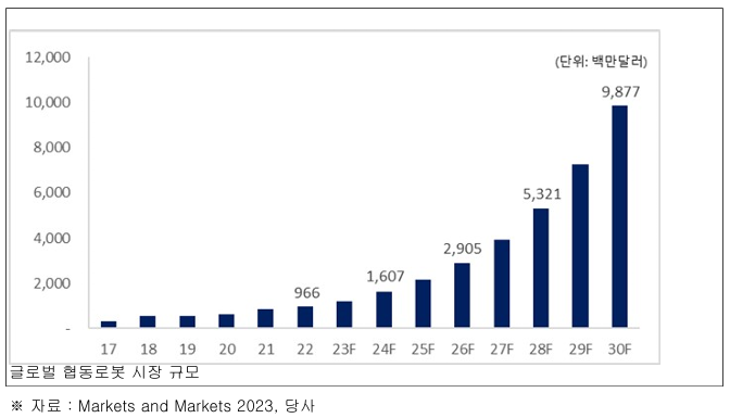 📌 시장 조사에 따르면, 협동로봇 시장 규모는 빠르게 성장 중이다.