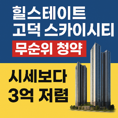 힐스테이트 고덕 스카이시티 무순위 청약이 드디어 금일 신청이 이루어 집니다. 청약통장 없이, 전국 어디서든, 신축 힐스테이트를 시세보다 3억 싸게 잡을 수 있는 기회라고 생각합니다.