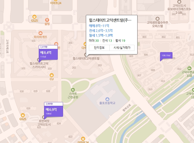 고덕 전체 평균이 아니라, 진짜 경쟁군인 인접 단지들과 비교해야 가격 메리트가 보이죠.