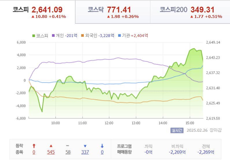 코스피 2,641선 회복 – 기관의 매수 전환이 주도
