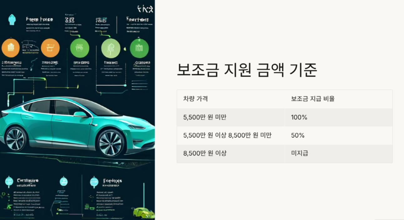 - 5,500만 원 이상 8,500만 원 미만 차량: 보조금 50% 지급