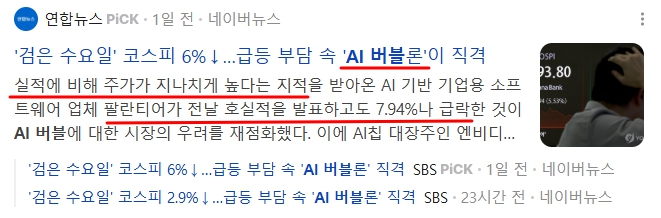 AI 관련 기업들이 그간 기대에 비해 실적이 미흡하거나 성장 가시성이 낮아질 경우, 시장은 해당 기업들의 밸류에이션을 빠르게 바꾸게 됩니다. 이는 국내 기업들에게도 동일한 잣대가 적용될 수 있습니다.