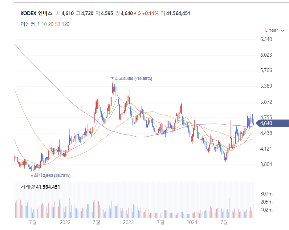 • 특징: 지수가 하락할 때 수익을 내는 ETF.